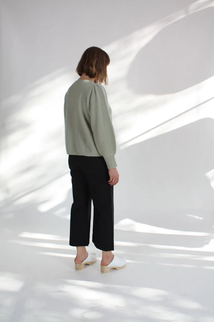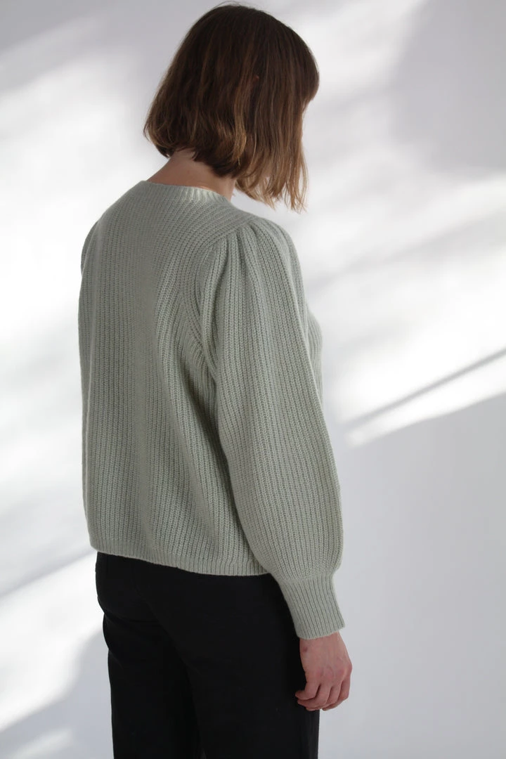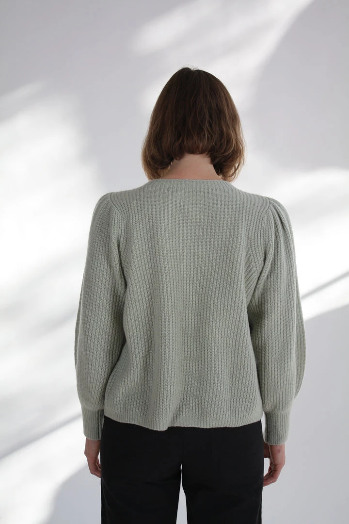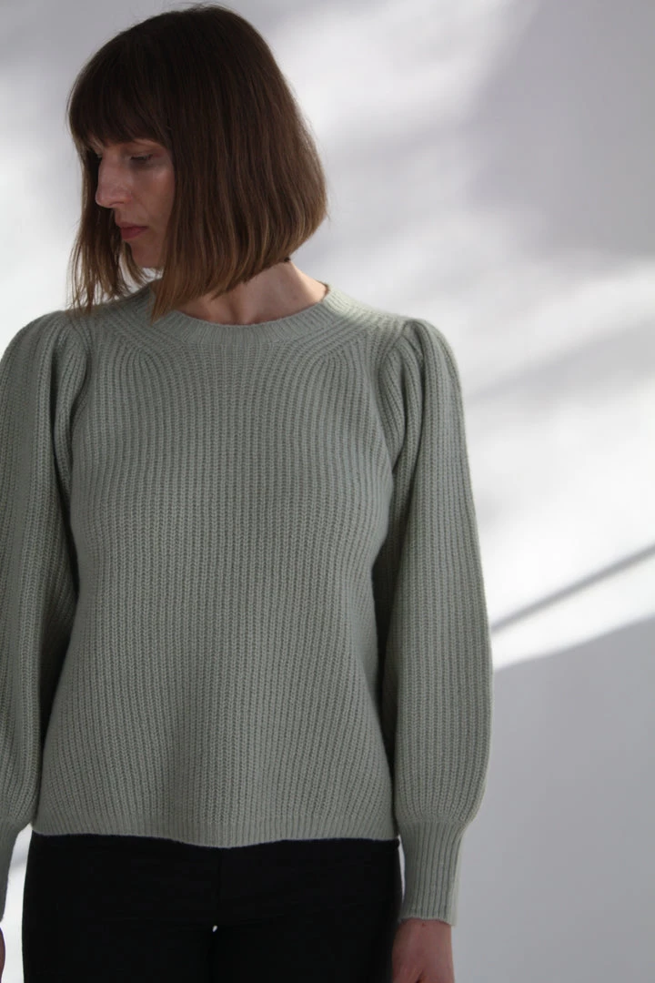 Our most luxurious sweater yet! In an ultra soft silk-cashmere sweater the Arne Sweater will keep you warm, while looking great. Ribbed throughout in tonal neutrals with and a feminine puffed sleeve.