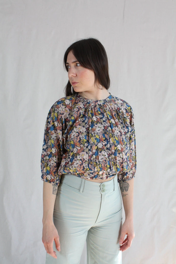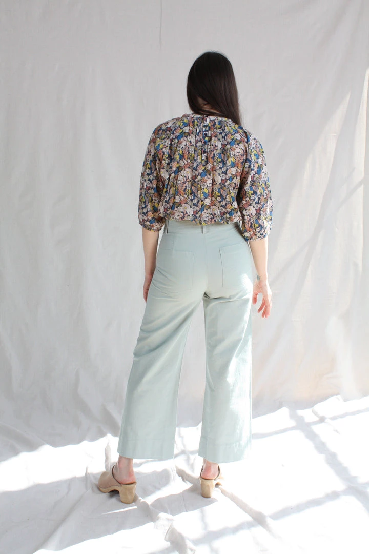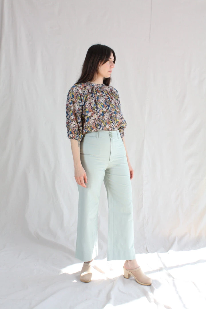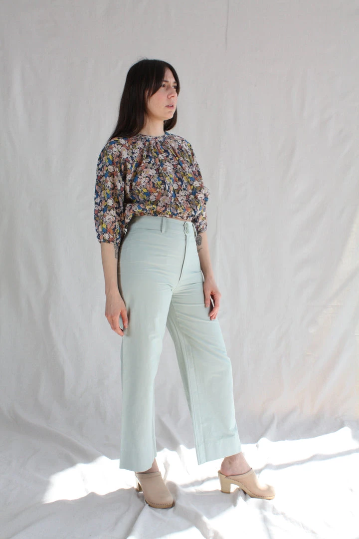 A flattering, high-rise fit, designed for repeat wear in any season. Cut from a textured cotton, with a menswear-inspired straight waistband. Classic back pockets and nearly hidden front pockets add functionality. Slight crop at the ankle, with a zipper closure and Apiece Apart’s signature double buttons.