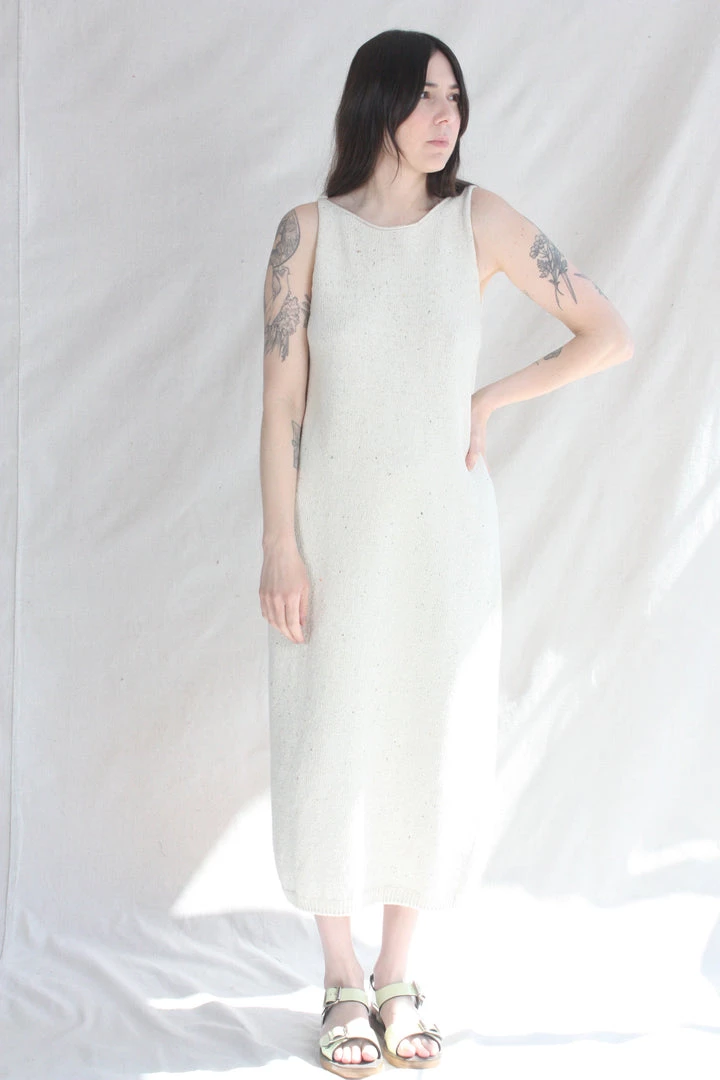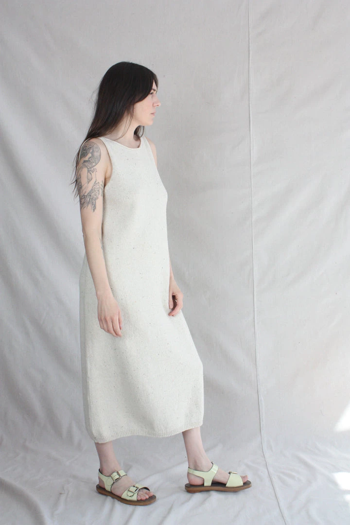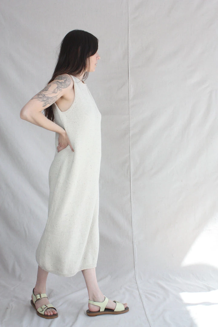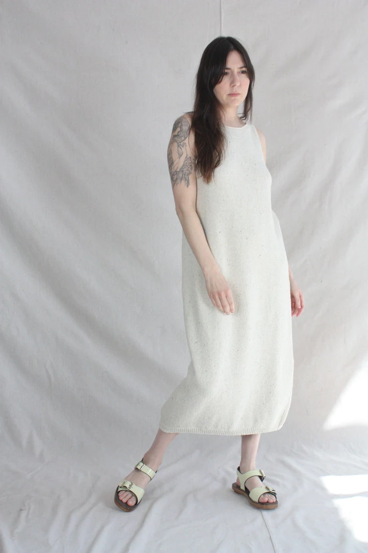Designed to feel it loosely on the body, the boxy shape gives it a comfy and easy to wear definition. Detailed with boat neck and back opening on the bottom. Light structure, soft texture with a beautiful melange. This dress is ethically and carefully manufactured in La Coruña, from high quality yarn, with Japanese machines and finished by hand. Cordera uses yarns with traceability certified and a production cycle that minimizes their impact on the environment.