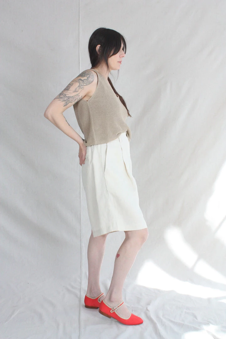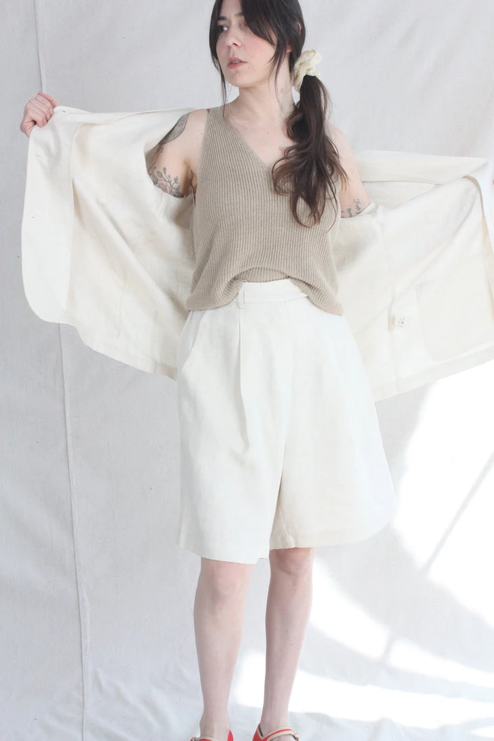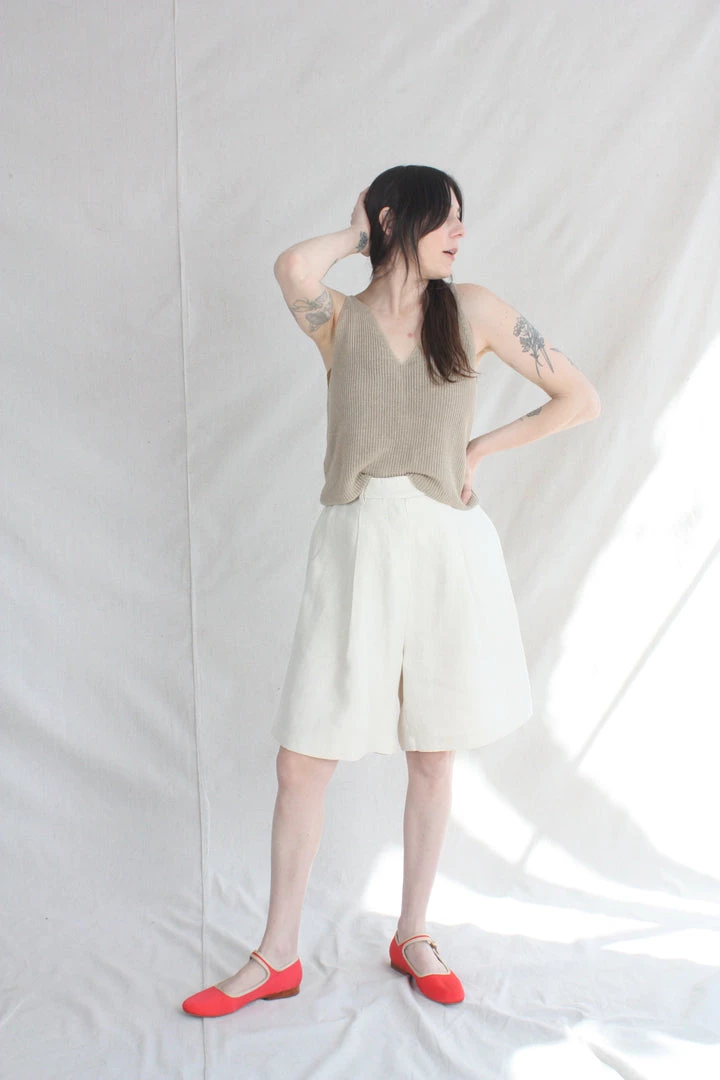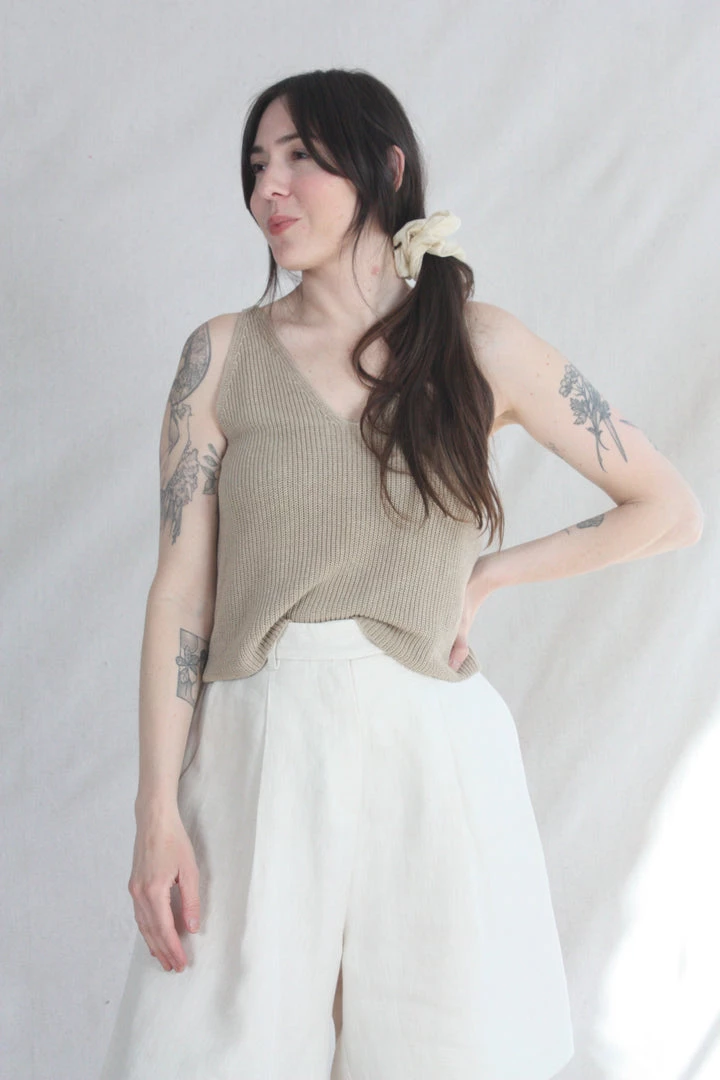 A classic tank with a wide v-neck, in a soft linen knit with a light and airy structure. This linen tank top is ethically and carefully manufactured in La Coruña, from high quality linen knitted with Japanese machines, finished by hand. Cordera uses yarns with traceability certified and a production cycle that minimizes their impact on the environment.
