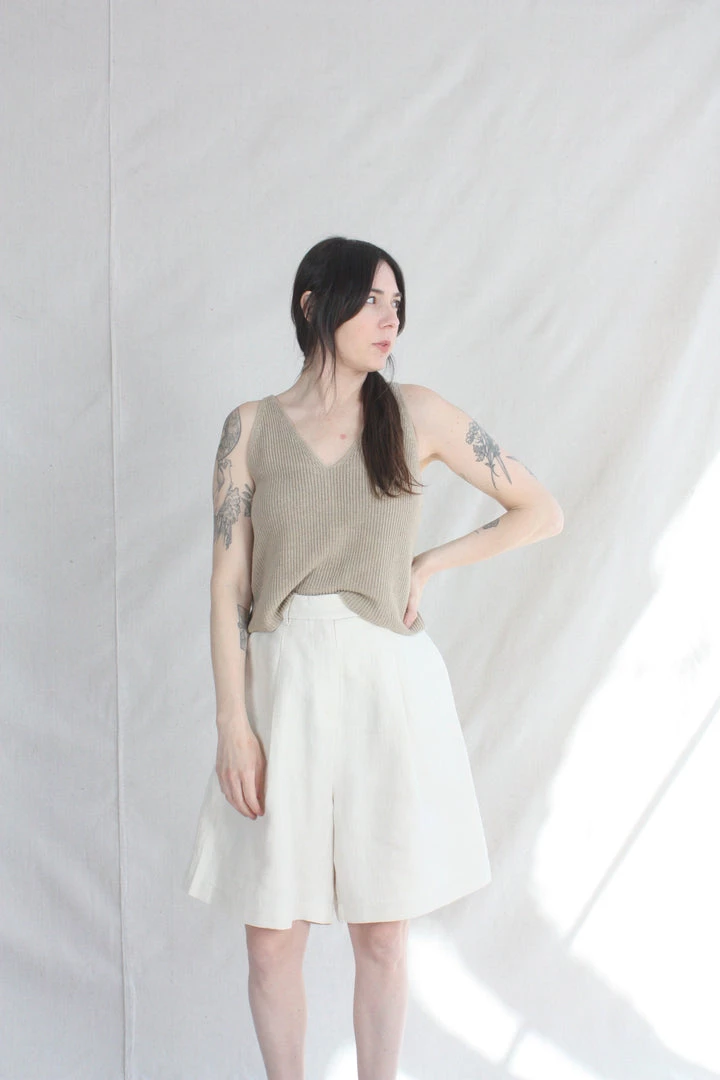 Timeless yet modern, a classic shape with a twist. Loose fit for an easy wearing. Front pleats, elastic waist in the back and zip front closure. Side pockets. These pants are ethically and carefully manufactured in La Coruña, crafted from high quality fabric and dyed locally with the latest technology and sustainable methods.