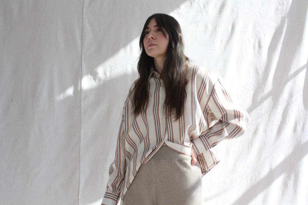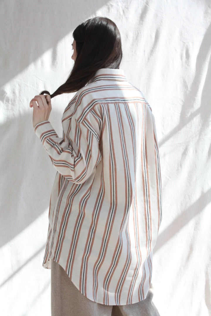 Oversize boyfriend fit, detailed with visible button clousure, basic shirt collar and long sleeves with cuff buttons. Timeless modern fit for year round use. Made from light, comfy and natural fabric. This shirt is ethically and carefully manufactured in Galicia (Spain), made of BCI cotton and high quality linen. Cordera uses the latest technology in the most sustainable ways: reducing water usage, plastic and toxic waste.