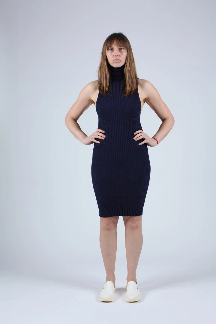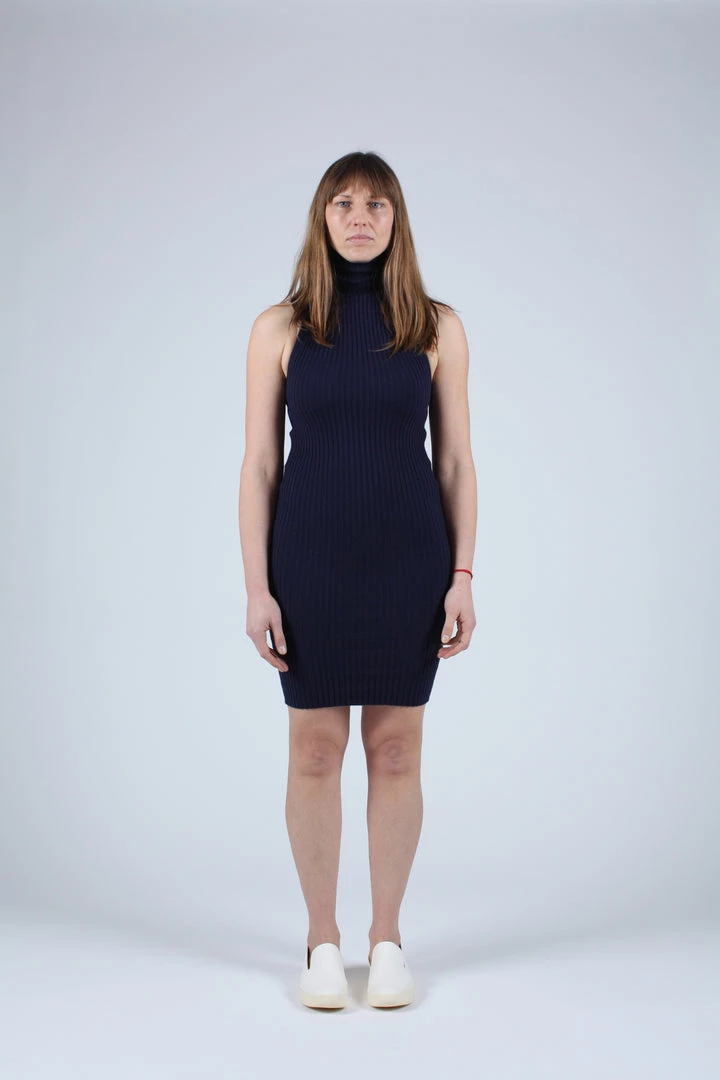 Shrunken ribbed sleeveless dress with Giu Giu’s Nonna turtleneck.