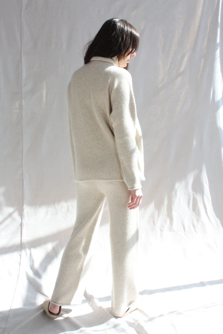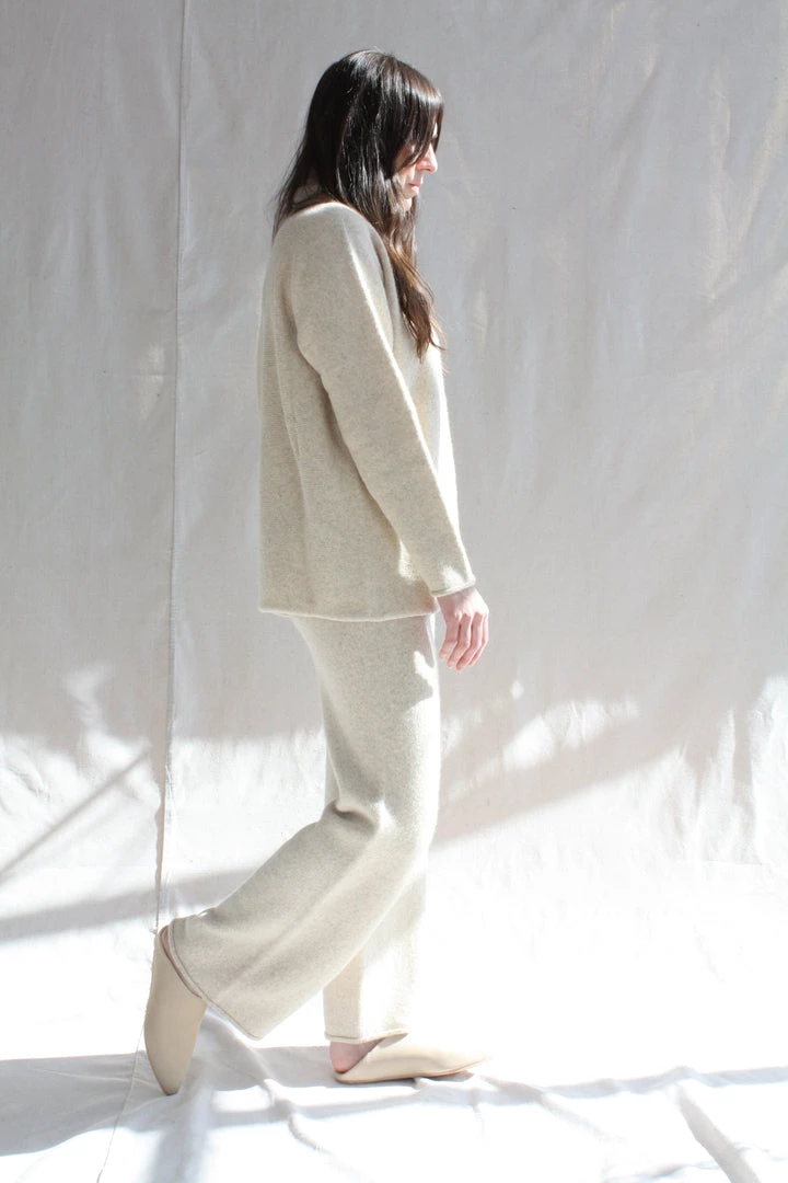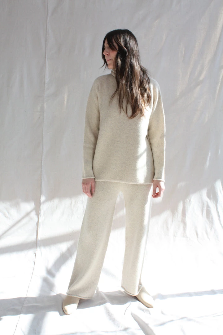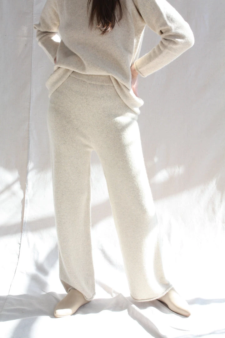 Seamless leg construction and elastic waist in a super baby alpaca. Softly washed finish.
