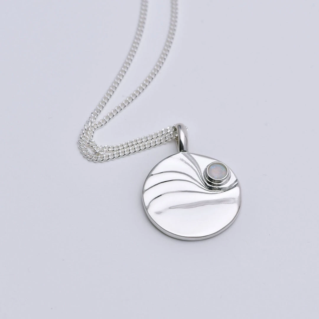- 20” sterling silver curb chain, solid sterling silver pendant & opal