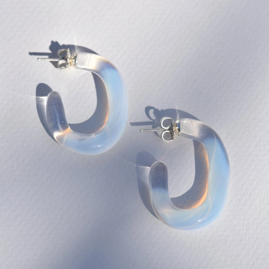 Each hoop is individually formed by a glass artist, so no 2 pairs are alike. Made with borosilicate glass, the hardest glass on the spectrum, they are surprisingly durable. This lavender color is also considered a “color shifter glass’“- so it will shift to a delicate crystal blue tone in certain light sources.