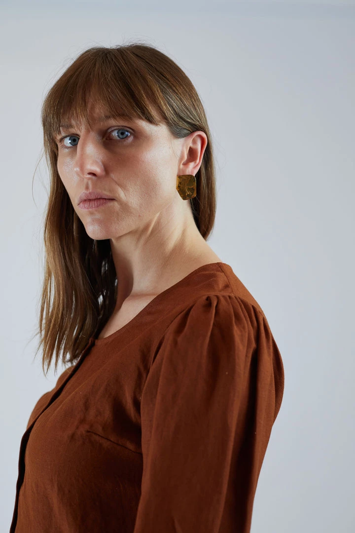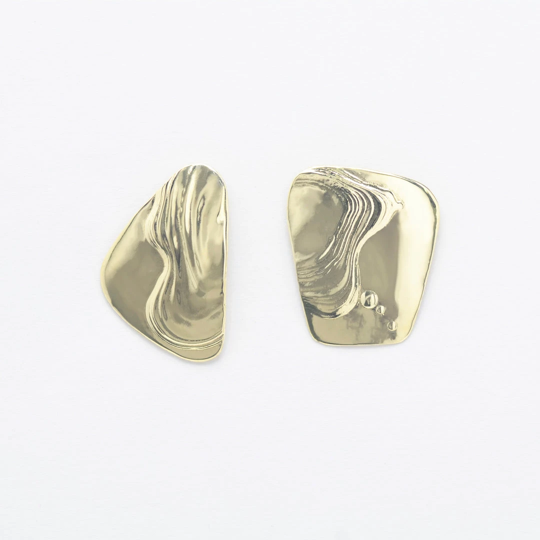 These asymmetric brass studs are inspired by bold splatter’s of Jackson Pollack’s work. Surprisingly lightweight.