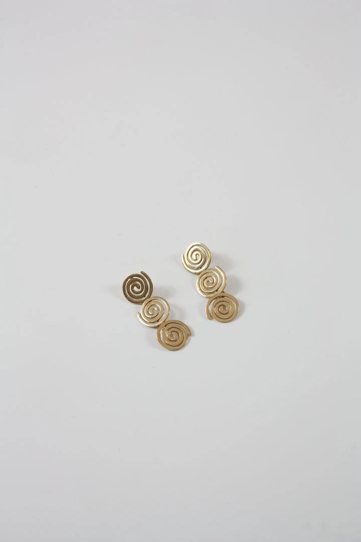 Triple spiral dangling studs in brass.