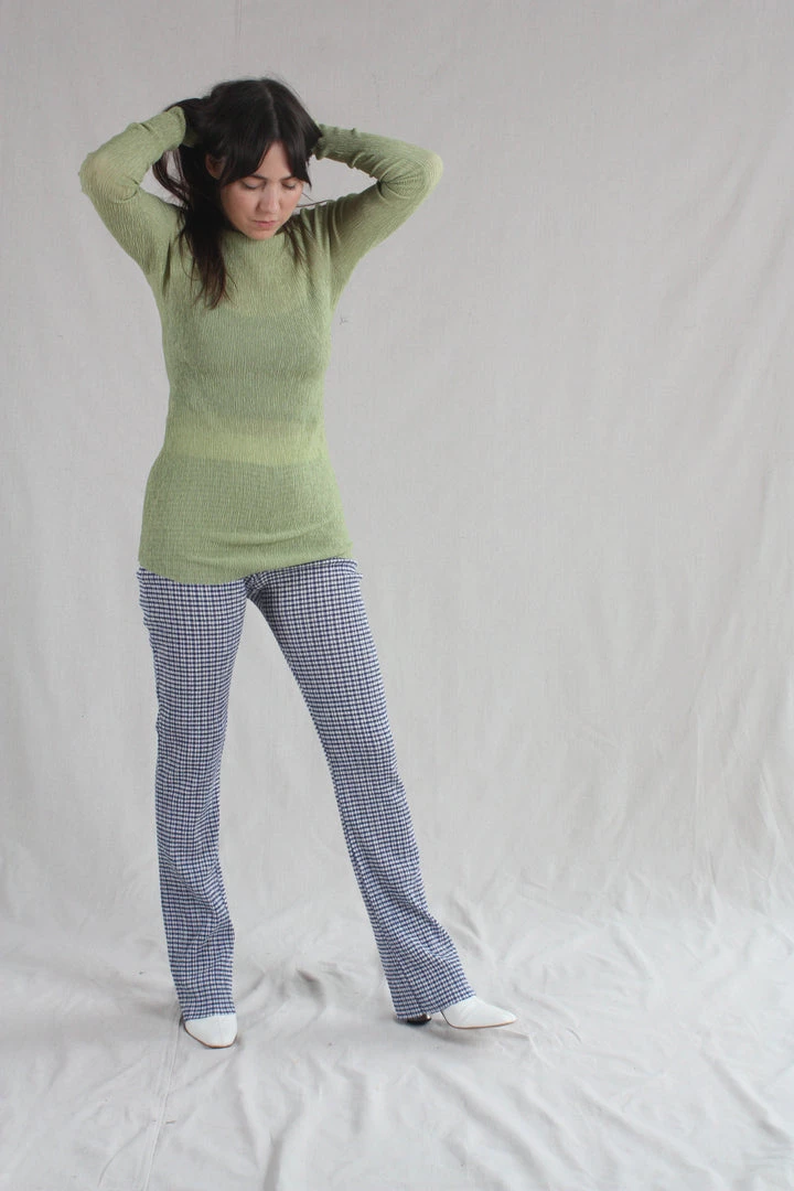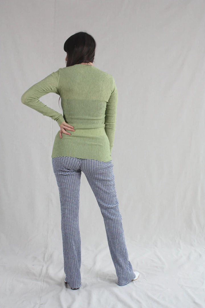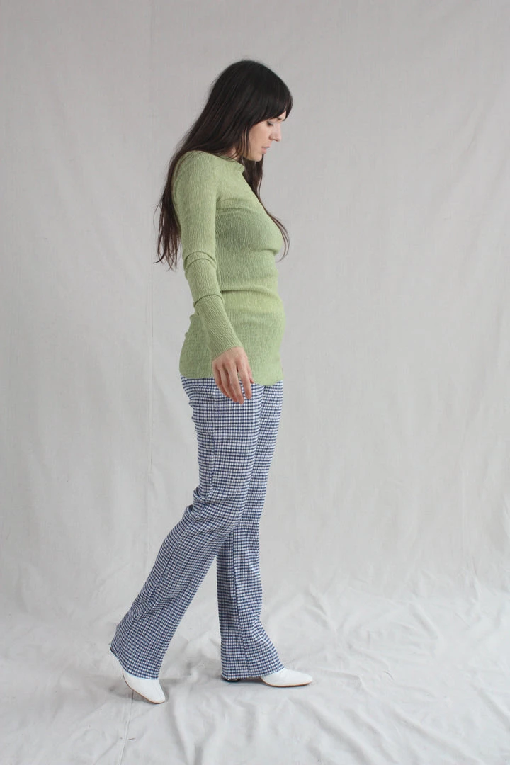 Boat Neck Top with long sleeves. Raw hem at body and sleeve, neckline finished with bias trim.