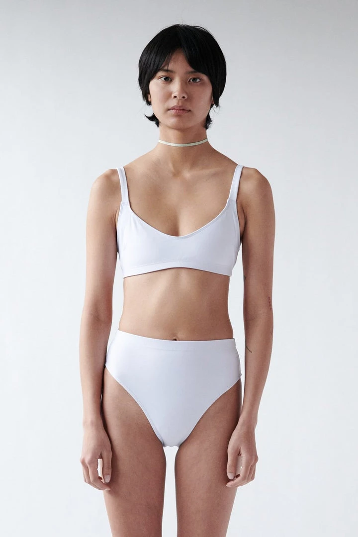 The Super-Hi Bottom has a high cut leg and mid-high waist, finished with a 3/4 inch waistband. Fully lined.