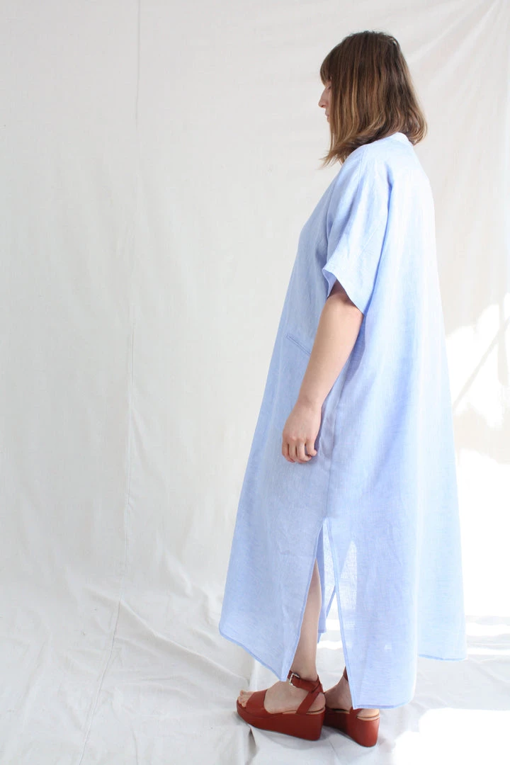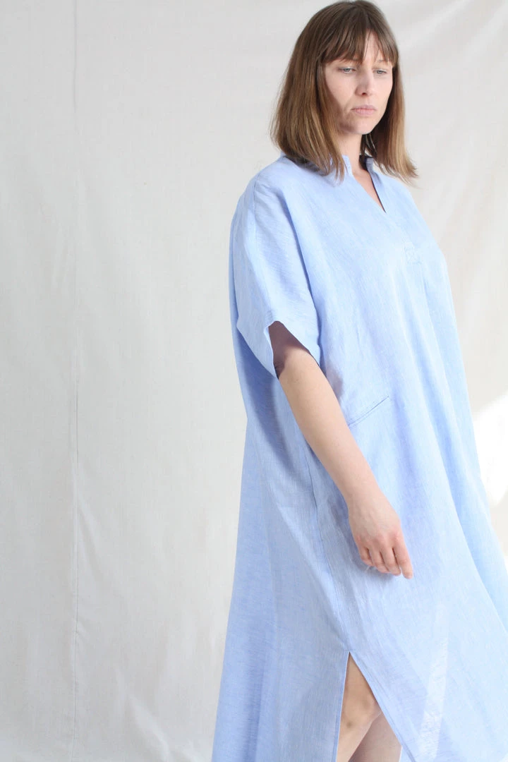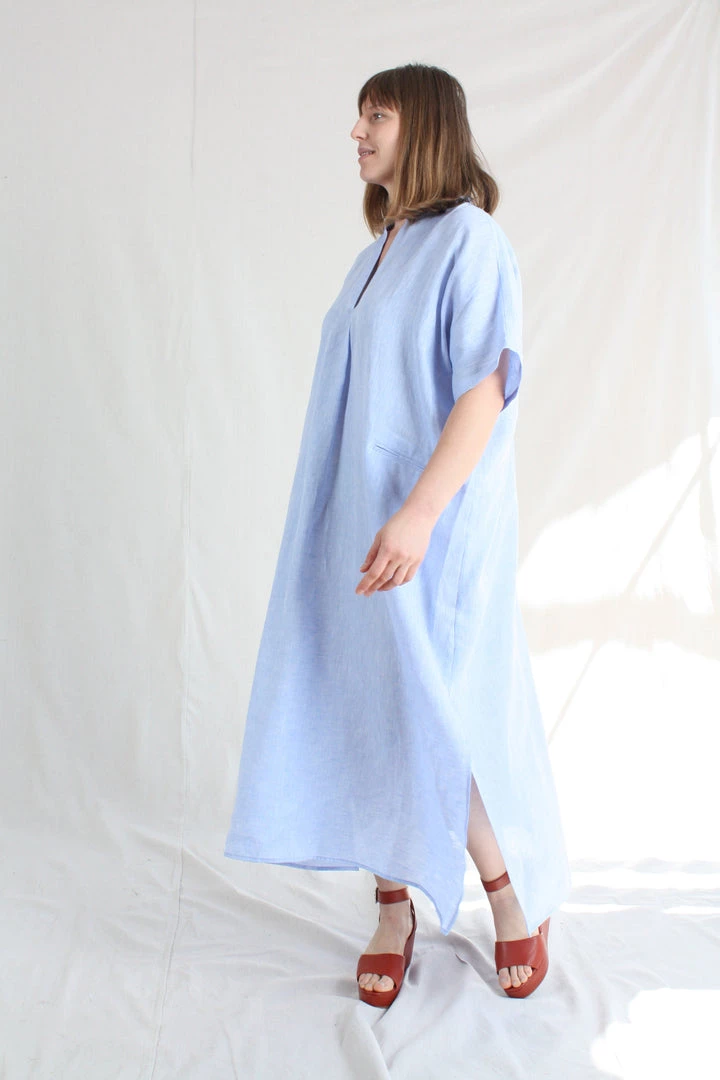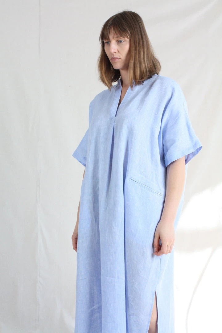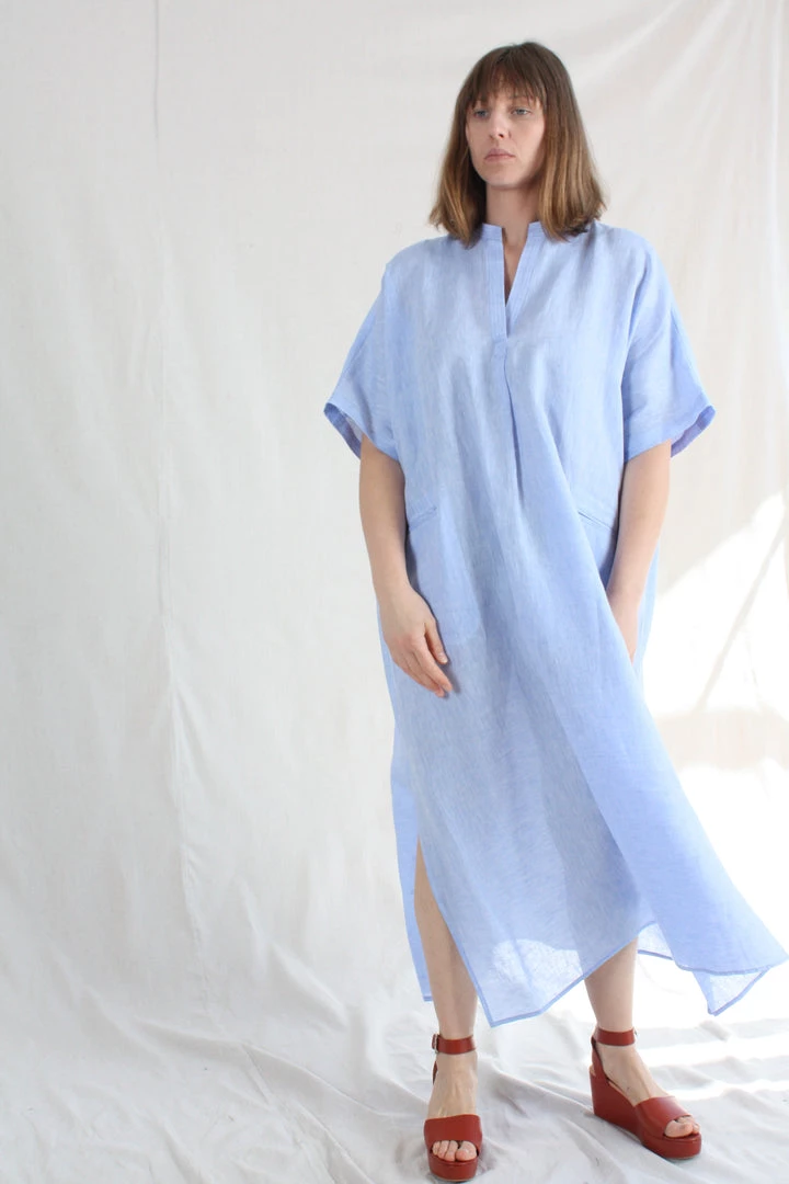 The airy Culver Dress slips on easily as daywear or a swim topper. This free-flowing silhouette is cut for an oversized fit. V-neck. Patch pockets at front. Side slits at hemline.