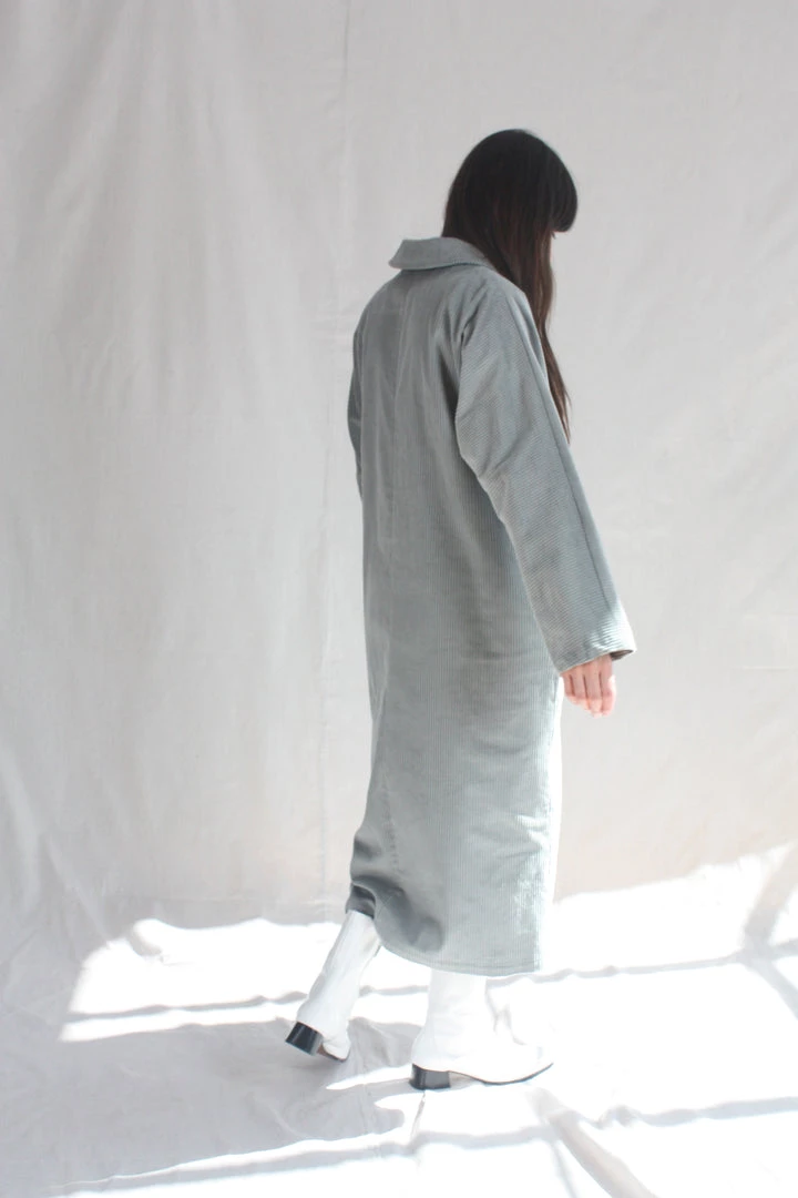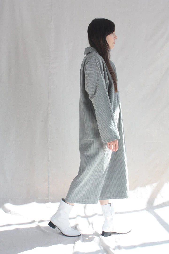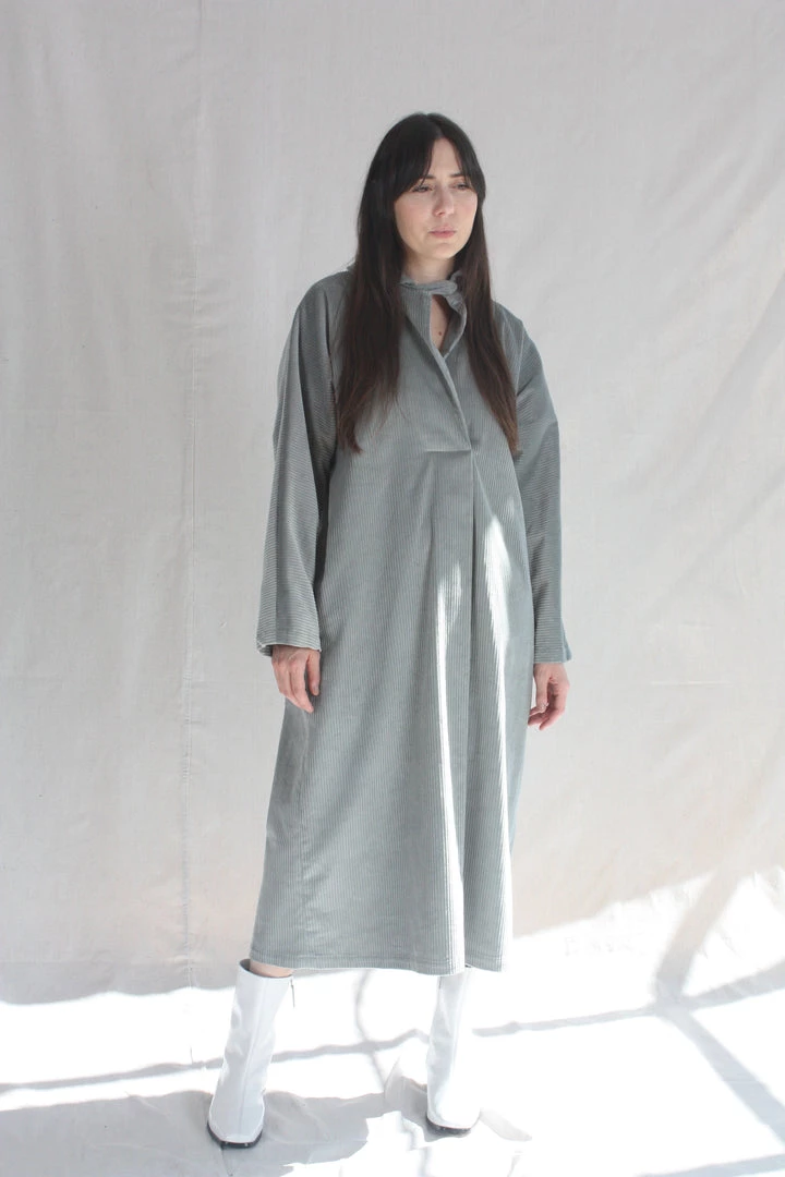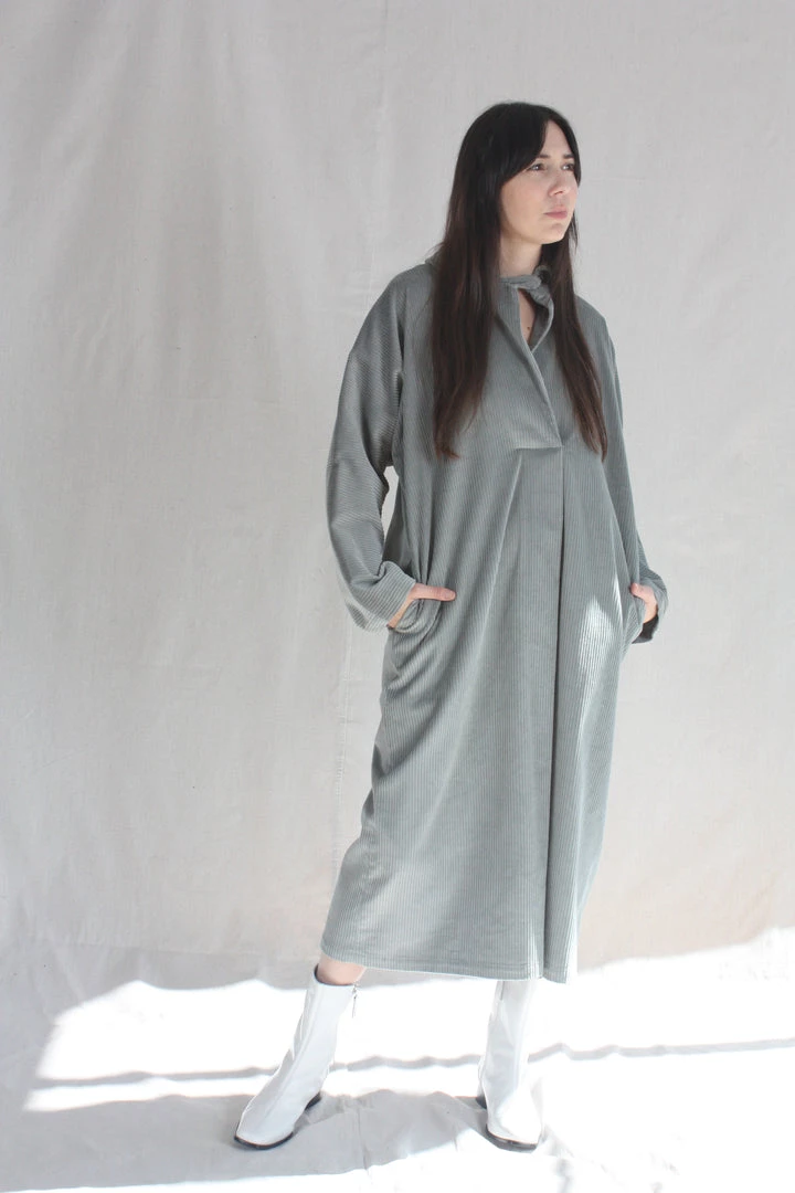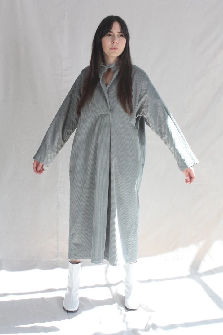 The Marcelino Dress is a boxy, oversized long sleeve dress with a polo collar in soft cotton corduroy. Slip on solo, or layer.