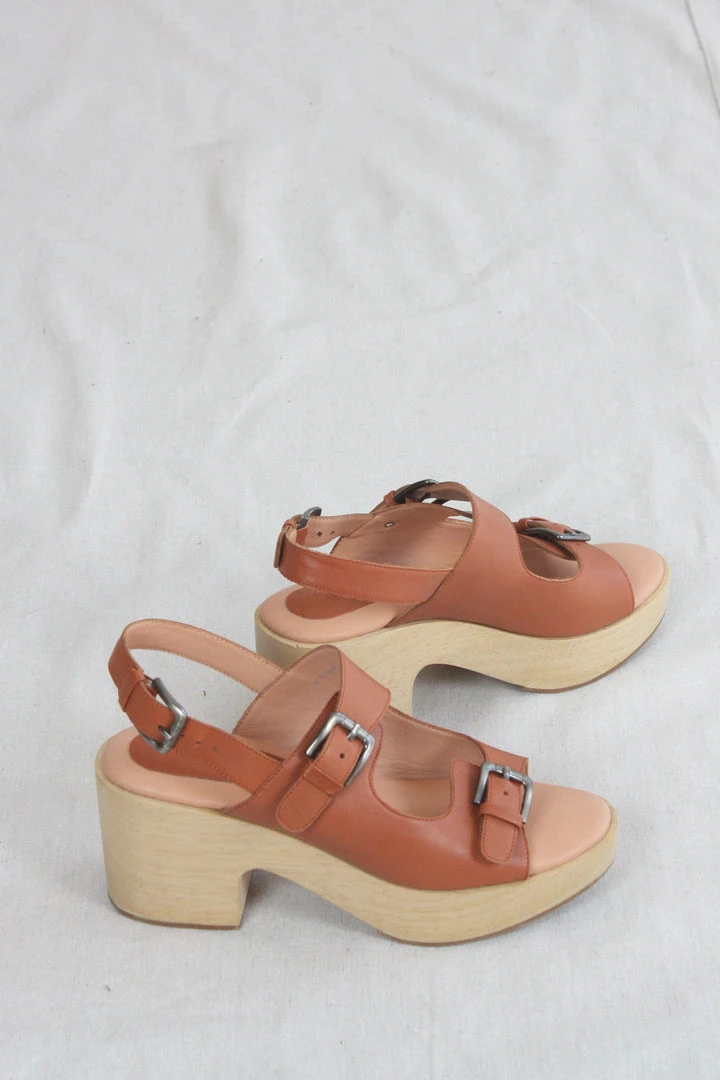 - 100% 100% Kidskin Leather Upper, 100% Wood Base, 100% Rubber Sole