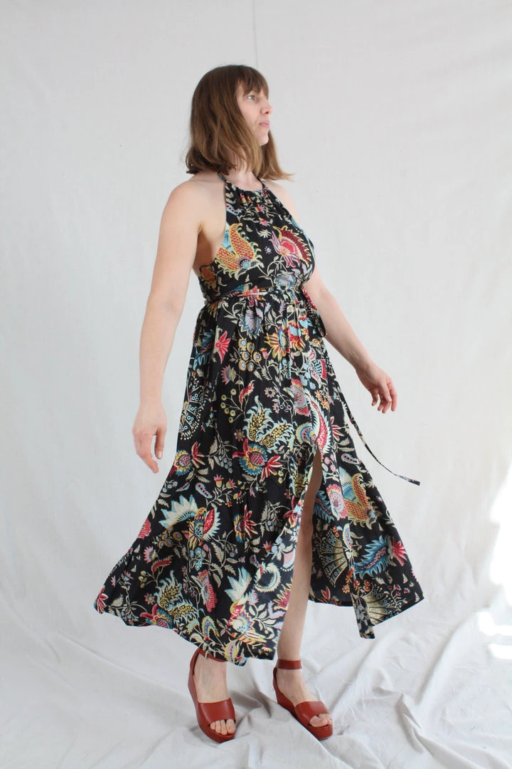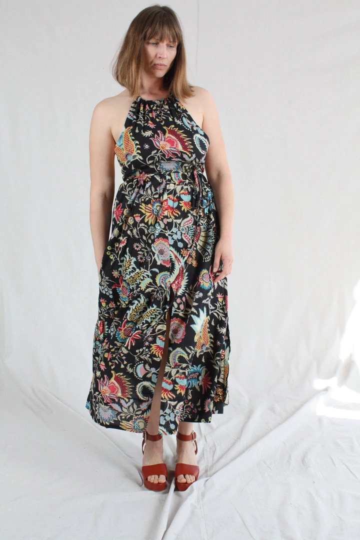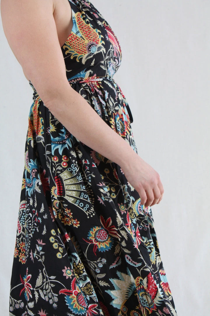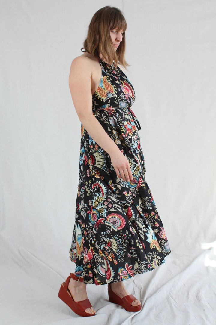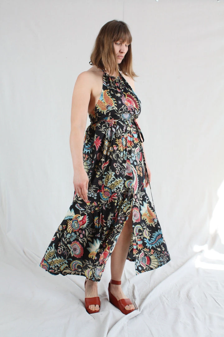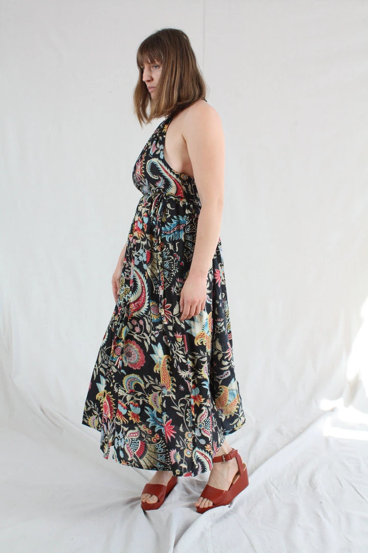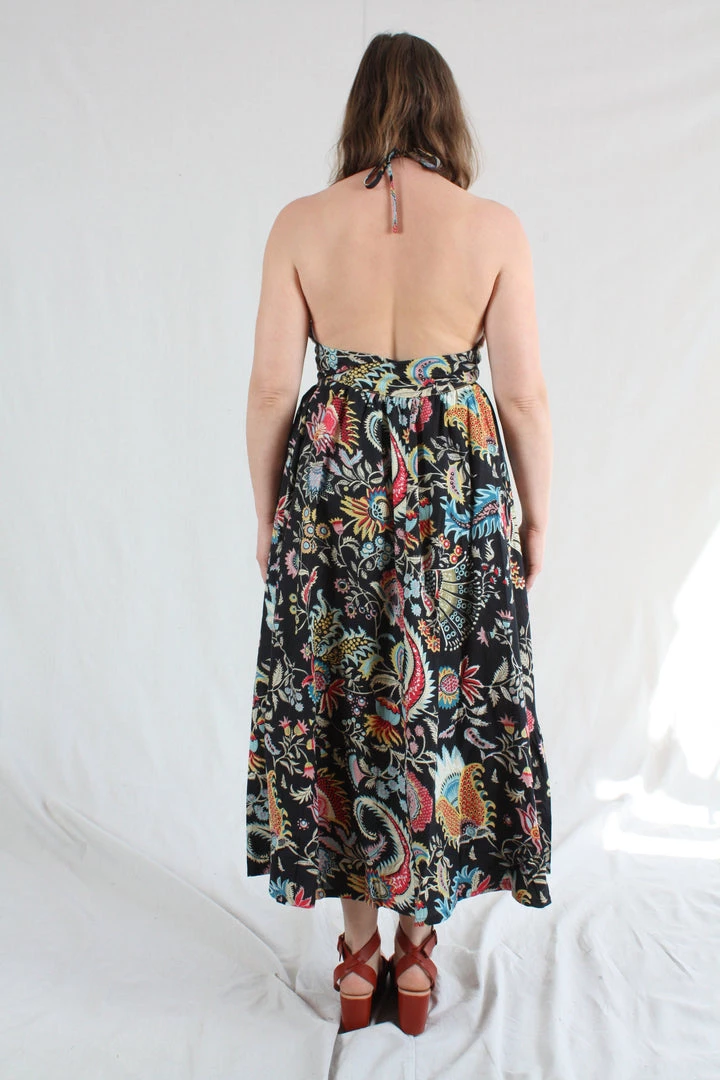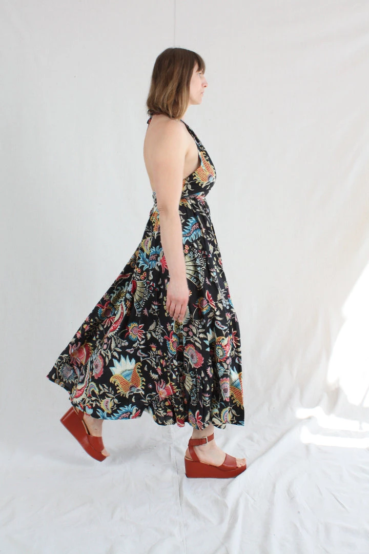 The Sazerac Dress is a full-skirted style with a self-tie halter neckline. Cut from featherweight, printed cotton, this airy dress is an effortless summer statement. Open back. Wrap waist with self-tie closure.