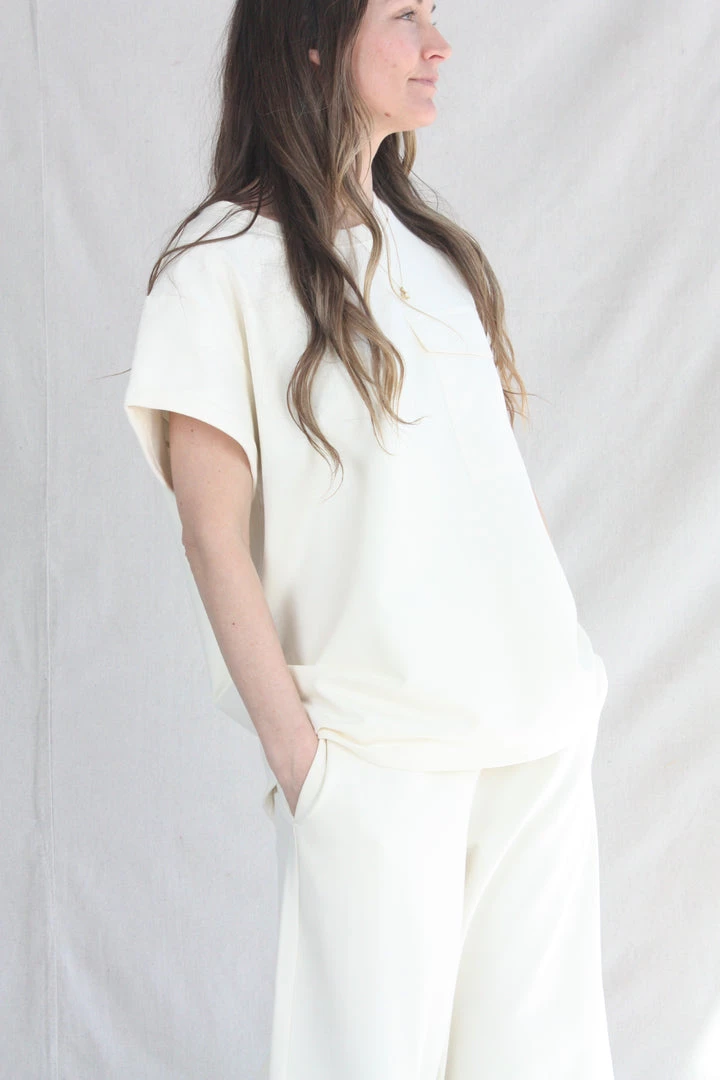 Nora is a top made in a relaxed fit with regular shoulders and with short, folded sleeves. Getting ready in the morning just got a little easier with this jersey top in your wardrobe. Nora is decorated with a patch pocket at chest and made with a comfy round neck. This top is made with sustainability in mind and are made of GOTS certified organic cotton instead of traditional grown cotton.