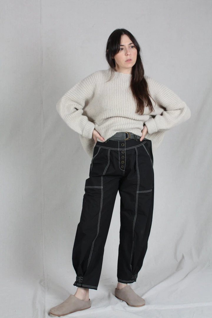 The Charline Pants are a seasonless staple, cut in a military poplin with a relaxed shape and high-waist silhouette. These trousers feature a buttoned fly, removable belt and side pockets.