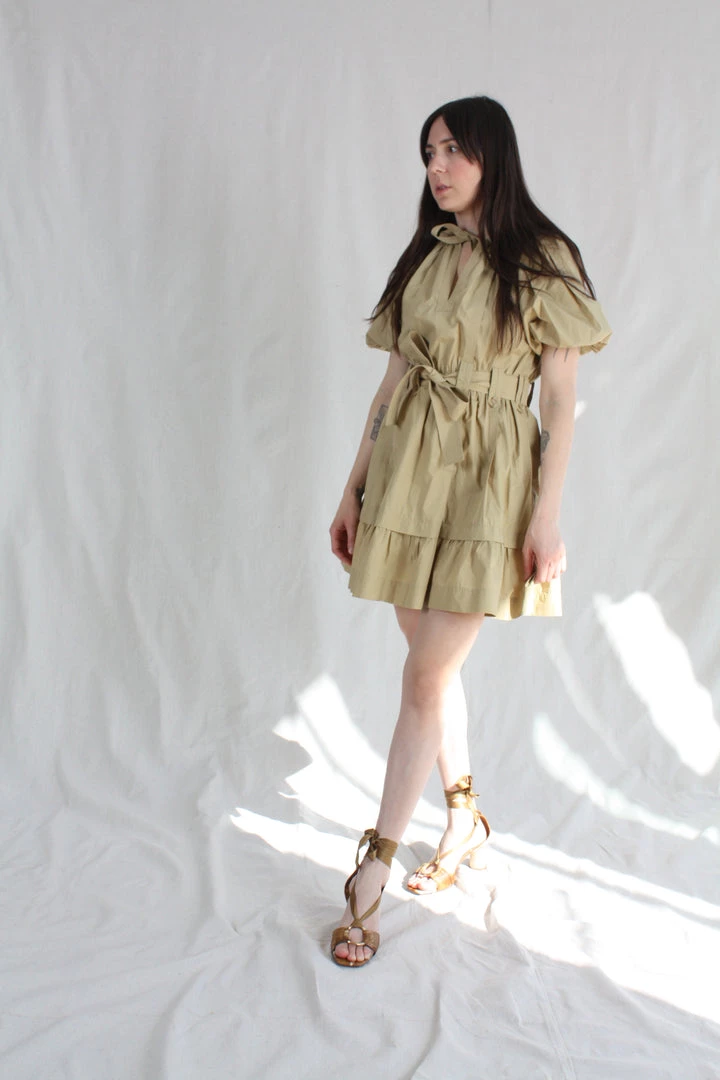 The Sadie Heel is made from soft lambskin in hand-dyed Moss tie-dye. This lace up sandal features a rounded mid-height heel and hammered brass detailing on the toe strap. Easy to dress up or down.
